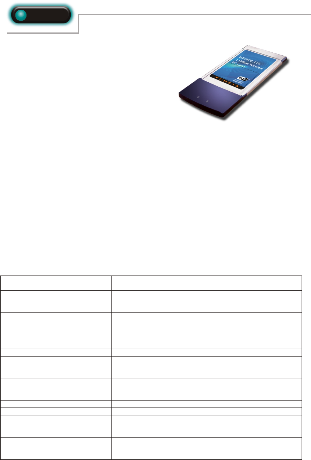 IEEE802.11b 11Mbps Wireless PC Card Specification Sheet