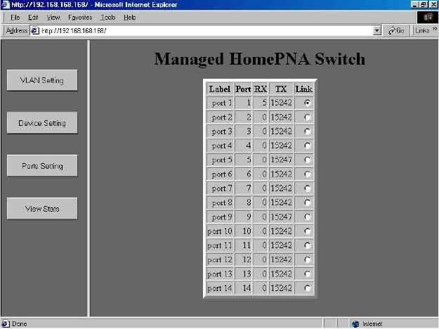 shows that the port 1 on the HomePNA switch is linked to a NIC.