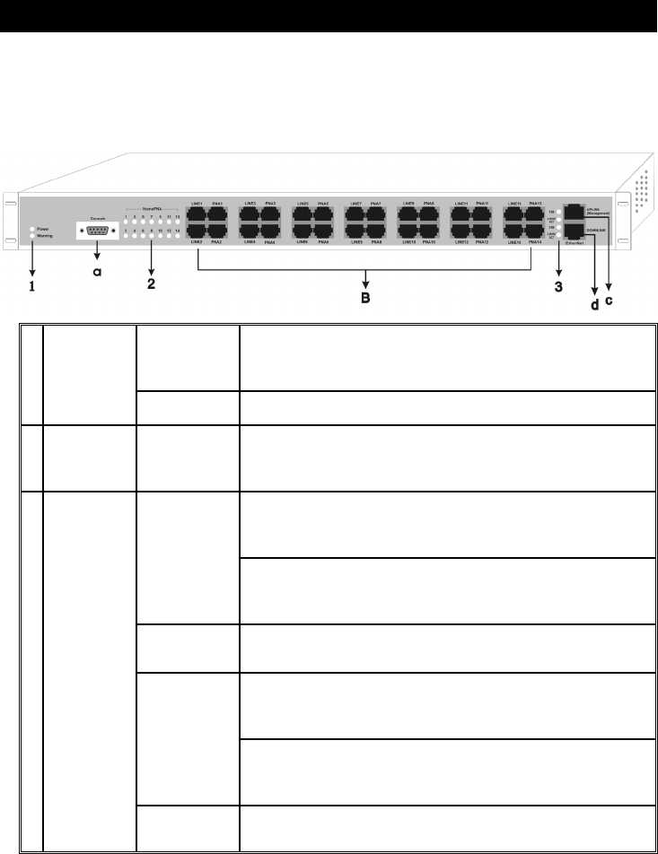 The front panel of the switch, displayed below, has fourteen 1Mbps switching ports