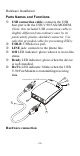 Hardware Installation Parts Names and Functions USB connection cable: connects the USB host port with the USB V.90 FAX/MODEM. (Note: this included USB connection cable is slightly different from ordinary ones by its particularly plastic-shielded connector. Use only this provided cable for preventing ESD.) USB-B: USB device port. LINE jack: connects to the phone line. OH LED indicator: glows when it is in on-line status. Ready LED indicator: glows when the device is well installed.