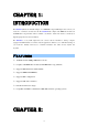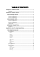 Table of Contents CHAPTER 1: INTRODUCTION ..................................................... 1 FEATURES ..............................................................................................1 CHAPTER 2: INSTALLATION....................................................... 1 FOR WINDOWS 2000/XP ......................................................... 2 INSTALL THE SOFTWARE ..........................................................................2 INSTALL THE HARDWARE .............................