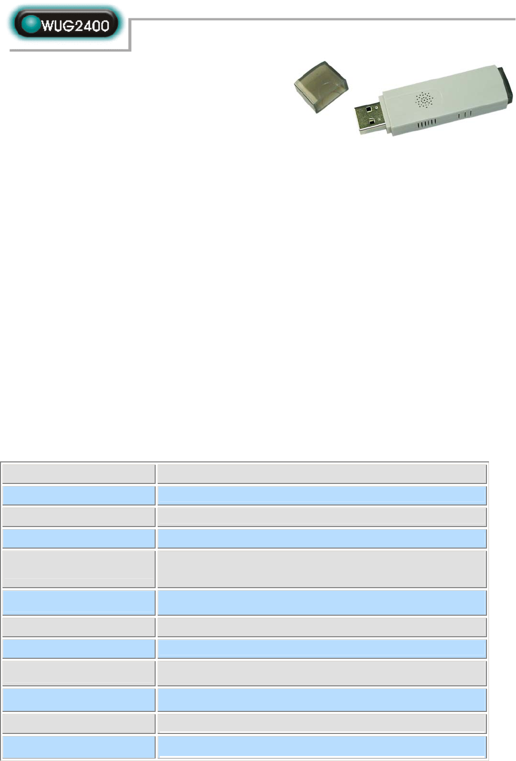 802.11b/g Wireless LAN USB 2.0 Adapter Specification Sheet
