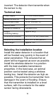 Tekniske data Spændingsforsyning 3 V-lithiumbatteri CR2 Batterilevetid Indtil 3 år Miljøklasse I (-10 °C til +55 °C) Sikkerhedsgrad 2 Driftsfrekvens 868,6625 MHz Vægt (med batteri) ca. 90 g Mål (HxBxD) 90*35*30 mm (sender) Mål (HxBxD) 45*10*15 mm (sensor) Ledningslængde ca. 1 m Valg af monteringsstedet Placér vandalarmen på et sted, som under alle omstændigheder oversvømmes meget tidligt, hvis der trænger vand ind. Derved garanteres det, at en alarm udløses så hurtigt som muligt.