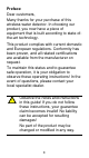 Preface Dear customers, Many thanks for your purchase of this wireless water detector. In choosing our product, you now have a piece of equipment that is built according to state-ofthe-art technology. This product complies with current domestic and European regulations. Conformity has been proven, and all related certifications are available from the manufacturer on request.