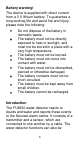 Battery warning! The device is supplied with direct current from a 3 V lithium battery. To guarantee a long working life and avoid fire and injury, please note the following: Do not dispose of the battery in domestic waste. The battery must not be directly exposed to heat or sunlight, and must not be stored in a place with a very high temperature. The battery must not be burned. The battery must not come into contact with water. The battery must not be dismantled, pierced or otherwise damaged.