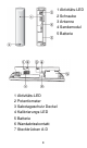 1 Dioda LED aktywności 2 Śruba 3 Antena 4 Moduł nadajnika 5 Bateria 1 Dioda LED aktywności 2 Potencjometr 3 Pokrywa zestyku sabotażowego 4 Dioda LED kalibracji 5 Bateria 6 Zestyk oderwania od ściany 7 Zworki A-D 71