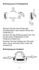 Bedienung Betätigen Sie den Knopf, um einen Pflegenotruf abzusetzen. Der Sender sendet ein Signal an Ihre Funkalarmzentrale Secvest und die LED blinkt sechs Mal. Wenn Sie den Knopf gedrückt halten, wird alle 5 Sekunden ein Signal übertragen. Befestigung am Taschenclip Drücken Sie den Taschenclip am oberen Ende zusammen, um ihn zu öffnen (1). Stecken Sie das untere Ende des Clips in den unteren Schlitz des Gehäuses (2).
