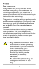 Preface Dear customers, Many thanks for your purchase of this wireless emergency call transmitter. In choosing our product, you now have a piece of equipment that is built according to state-of-the-art technology. This product complies with current domestic and European regulations. Conformity has been proven, and all related certifications are available from the manufacturer on request.