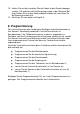 8. Programmering Aktiver programmeringstasten (15) for at komme til programmeringsmodus. Programmeringsmodus består af 6 undermenuer 1. driftsmodus Her vælger du mellem drift som trådløs betjeningsenhed (FU5140) og trådløst infomodul (FU8200) eller drift som 2WAY trådløs betjeningsenhed (FU8110) (se kapitel 8.1.) 2. beeb-lyde her kan du tænde hhv. slukke signaltonerne på den trådløse nøglekontakt (se kapitel 8.2.) 3. Brugerkode her indstillinger du brugerkoden (se kapitel 8.3.) 4.