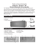 Thank you for purchasing the GOgroove™ BlueSync™ MC Dynamic Bluetooth® Stereo Speaker Say “Goodbye!” to wires with this high-fidelity speaker that allows you to move freely with your Bluetooth enabled device up to 30 feet! The GOgroove BlueSync MC also supports non-Bluetooth audio devices with the included 3.5mm cable and AUX line-in port. The BlueSync MC’s stylish, modern design and full-range sound complements and equips any room with stunning Bluetooth audio.