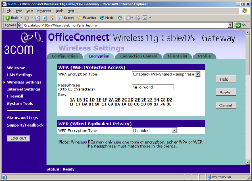 Figure 33 Encryption Keys Screen showing WPA configuration
