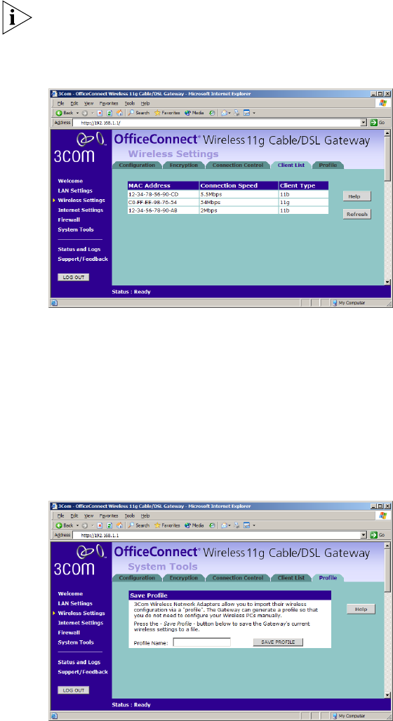 to the Wireless LAN. The list is only created when Wireless Networking is