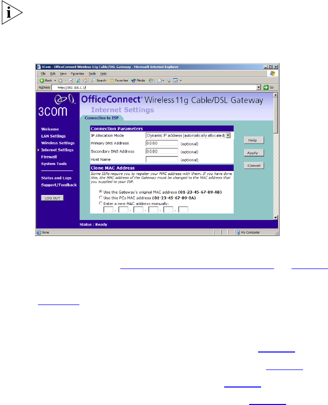 Select Internet Settings from the main menu to display Connection to ISP
