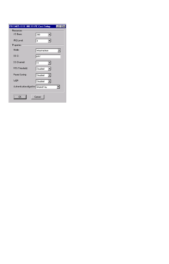 Mode - Set to “802.11 AdHoc” or “Infrastructure,” depending on the type of network