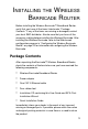 INSTALLING THE WIRELESS BARRICADE ROUTER Before installing the Wireless Barricade™ Broadband Router, verify that you have all the items listed under “Package Contents.” If any of the items are missing or damaged, contact your local SMC distributor. Also be sure that you have all the necessary cabling before installing the Wireless Barricade.