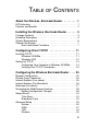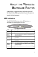 TABLE OF CONTENTS About the Wireless Barricade Router . . . . . . . . . 1 LED Indicators . . . . . . . . . . . . . . . . . . . . . . . . . . . . . . . . . . . . . . 1 Features and Benefits . . . . . . . . . . . . . . . . . . . . . . . . . . . . . . . . 2 Installing the Wireless Barricade Router . . . . . . . 3 Package Contents . . . . . . . . . . . . . . . . . . . . . . . . . . . . . . . . . . . 3 Hardware Description . . . . . . . . . . . . . . . . . . . . . . . . . . . . . . . . . 4 System Requirements .