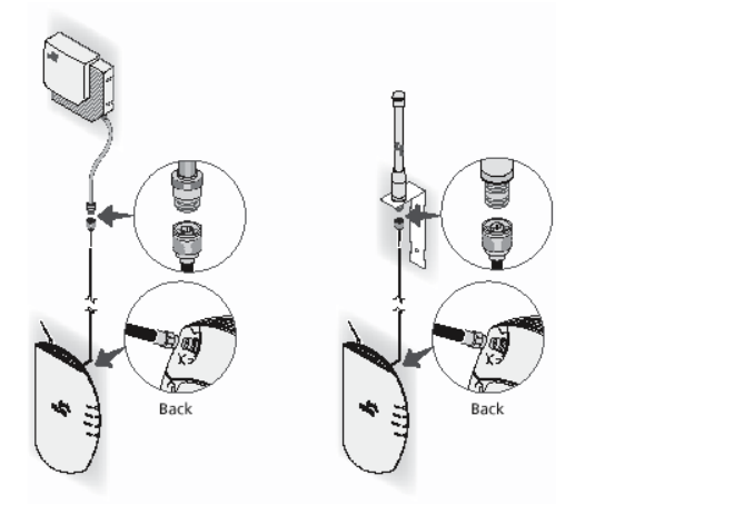 4 Connect the free end of the antenna cable to the right-hand side connection on the access point, as shown in