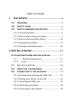 Table of Contents 1 THE BASICS ............................................................. 4 1.1 OVERVIEW ............................................................. 4 1.2 SAFETY GUIDE....................................................... 5 1.3 SAFETY WARNINGS AND NOTICES ........................ 6 1.3.1 General attention ................................................ 6 1.3.2 Notices when using your phone .......................... 7 1.3.3 Notices when using the battery .........................