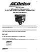 0908 Model # AC-G0005 6500 Surge Watts / 6000 Running Watts ELECTRIC START PORTABLE GENERATOR INSTRUCTION MANUAL Thank you for purchasing this high quality ACDelco Model AC-G0005 6500 Surge Watts / 6000 Running Watts Electric Start Portable Generator. This manual provides important information on properly operating and maintaining this ACDelco Model AC-G0005 6500 Surge Watts / 6000 Running Watts Electric Start Portable Generator. Every effort has been made to ensure the accuracy of this manual.