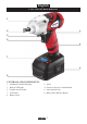 1English1 NOTE Due to the auto shut-off function, if tool is repeatedly operated on and off in a short time frame, the MCU will determine it as being over current resulting in tool shut down. This phenomenon occurs most frequently in the first torque stage. 1. After continuous use, allow the impact wrench to sit idle for 15 minutes before replacing the battery. The temperature of the motor, switch, etc.