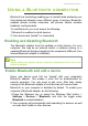 Using a Bluetooth connection - 7 USING A BLUETOOTH CONNECTION Bluetooth is a technology enabling you to transfer data wirelessly over short distances between many different types of devices. Bluetoothenabled devices include computers, cell phones, tablets, wireless headsets, and keyboards. To use Bluetooth, you must ensure the following: 1. Bluetooth is enabled on both devices. 2. Your devices are "paired" (or connected).