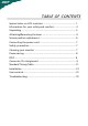 TABLE OF CONTENTS Special notes on LCD monitors .................................................. 1 Information for your safety and comfort .................................. 2 Unpacking ................................................................................... 5 Attaching/Removing the base .................................................... 6 Screen position adjustment ........................................................ 6 Connecting the power cord ...........................................