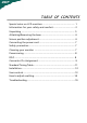 TABLE OF CONTENTS Special notes on LCD monitors .................................................. 1 Information for your safety and comfort .................................. 2 Unpacking ................................................................................... 5 Attaching/Removing the base .................................................... 6 Screen position adjustment ........................................................ 6 Connecting the power cord ...........................................