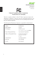 Acer America Corporation 333 West San Carlos St., San Jose CA 95110, U. S. A. English Tel : 254-298-4000 Fax : 254-298-4147 www.acer.com Federal Communications Commission Declaration of Conformity This device complies with Part 15 of the FCC Rules. Operation is subject to the following two conditions: (1) this device may not cause harmful interference, and (2) this device must accept any interference received, including interference that may cause undesired operation.