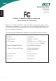 Acer America Corporation 333 West San Carlos St., San Jose CA 95110, U. S. A. English Tel : 254-298-4000 Fax : 254-298-4147 www.acer.com Federal Communications Commission Declaration of Conformity This device complies with Part 15 of the FCC Rules. Operation is subject to the following two conditions: (1) this device may not cause harmful interference, and (2) this device must accept any interference received, including interference that may cause undesired operation.