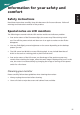 Accessibility English Be sure that the power outlet you plug the power cord into is easily accessible and located as close to the equipment operator as possible. When you need to disconnect power from the equipment, be sure to unplug the power cord from the electrical outlet. Safe listening To protect your hearing, follow these instructions. • Gradually increase the volume until you can hear it clearly and comfortably and without distortion.