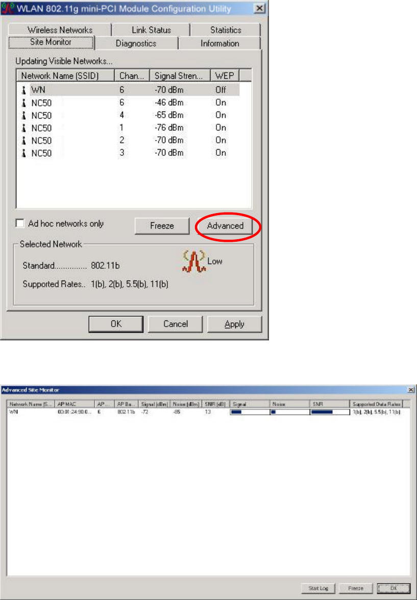 You may select the appropriated “Network Name” and click”Advanced” to see