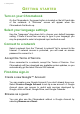 Table of contents - 3 TABLE OF CONTENTS Getting started Turn on your Chromebook....................... Select your language settings ................. Connect to a network............................... 4 4 4 4 Accept the Terms of Service....................... 4 First-time sign-in ...................................... 4 Create a new Google™ Account ................ 4 Browse as a guest ...................................... 4 Sign in to your Google Account ..................