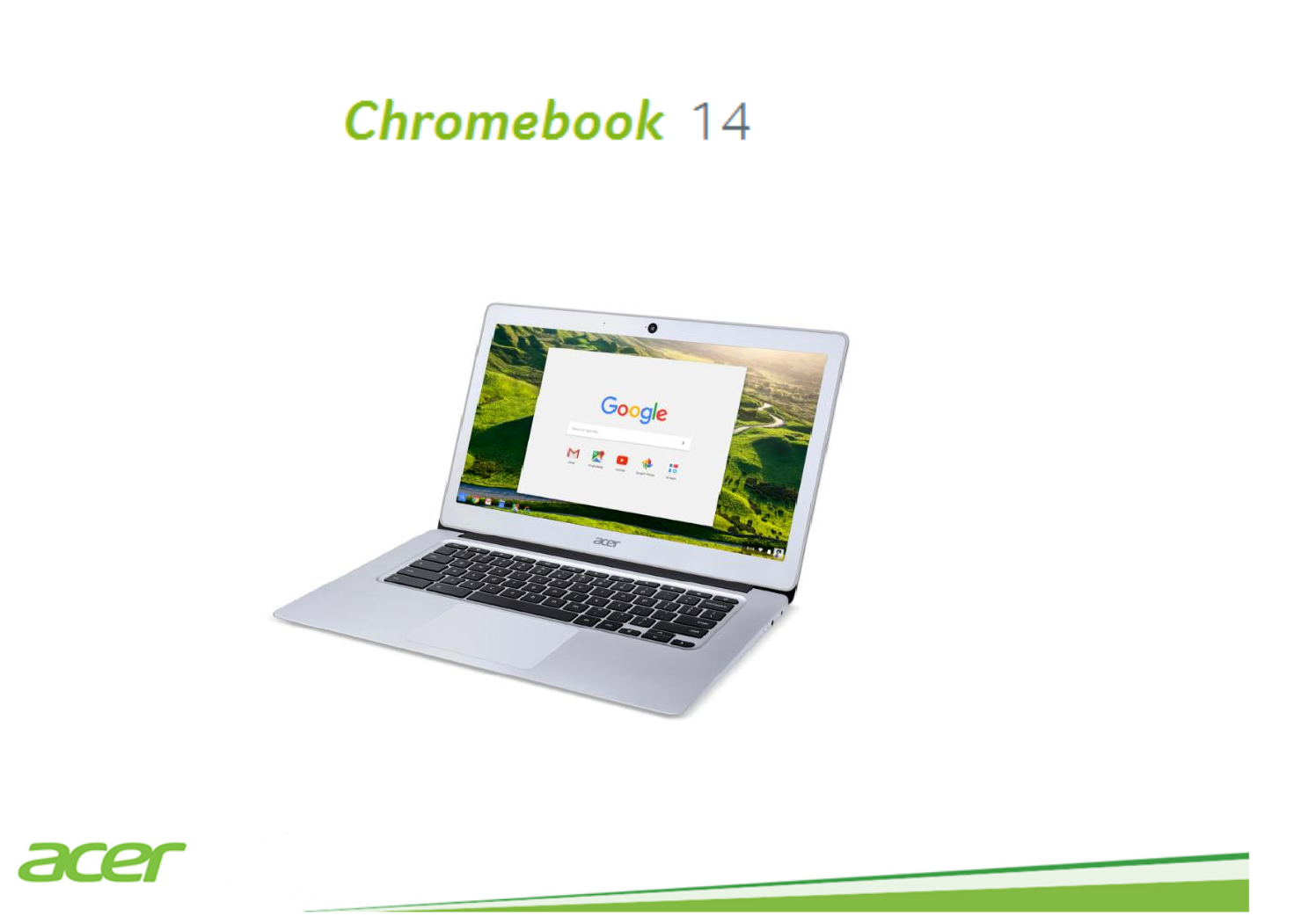 Model Ad Date Acer® CB3-431-C0MZ Chromebook June 20, 2018 Absolutely Stunning. 100% Metal. The Acer Chromebook 14 is a powerful rock star with its stylish 100% metal chassis and immersive Full HD IPS display that delivers an epic mobile experience that’s unrivaled by other Chromebooks on the big stage. The incredibly fast wireless connection and amazing battery life give you all day to run your favorite Google apps or access your photos, videos, music and documents.