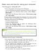- First things first • • • • • • • Do not expose the computer to rain or moisture. Do not spill water or any liquid on the computer. Do not subject the computer to heavy shock or vibration. Do not expose the computer to dust or dirt. Never place objects on top of the computer. Do not slam the computer display when you close it. Never place the computer on uneven surfaces. Taking care of your AC adapter Here are some ways to take care of your AC adapter: • Do not connect the adapter to any other device.