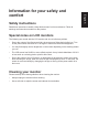 iii iii iii iii iv iv iv iv v vi vi vi vi vii vii vii viii viii ix x Unpacking 1 2 3 3 4 4 5 Standard timing table Installation Users controls 6 Screen position adjustment Connecting the adapter and AC Power cord Power saving Display Data Channel (DDC) 20-pin color display signal cable 19-pin color display signal cable Using the Shortcut Menu The Function page Troubleshooting HDMI/DP Mode (Optional) 7 7 9 10 15 15 English Safety instructions Special notes on LCD monitors Cleaning your monitors A