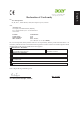 English Acer America Corporation 333 West San Carlos St., San Jose Suite 1500 CA 95110, U. S. A. Tel : 254-298-4000 Fax : 254-298-4147 www.acer.com Federal Communications Commission Declaration of Conformity This device complies with Part 15 of the FCC Rules. Operation is subject to the following two conditions: (1) this device may not cause harmful interference, and (2) this device must accept any interference received, including interference that may cause undesired operation.