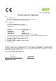 x Acer Incorporated 8F, 88, Sec. 1, Xintai 5th Rd., Xizhi New Taipei City 221, Taiwan Declaration of Conformity We, Acer Incorporated 8F, 88, Sec. 1, Xintai 5th Rd., Xizhi, New Taipei City 221, Taiwan Contact Person: Mr. RU Jan, e-mail:ru.jan@acer.com And, Acer Italy s.r.l Via Lepetit, 40, 20020 Lainate (MI) Italy Tel: +39-02-939-921 ,Fax: +39-02 9399-2913 www.acer.