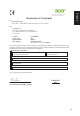 English Acer Incorporated 8F, 88, Sec. 1, Xintai 5th Rd., Xizhi New Taipei City 221, Taiwan Declaration of Conformity We, Acer Incorporated 8F, 88, Sec. 1, Xintai 5th Rd., Xizhi, New Taipei City 221, Taiwan And, Acer Italy s.r.l. Via Lepetit, 40, 20020 Lainate (MI) Italy Tel: +39-02-939-921 ,Fax: +39-02 9399-2913 www.acer.