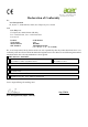 Acer Incorporated 8F, 88, Sec. 1, Xintai 5th Rd., Xizhi New Taipei City 221, Taiwan Declaration of Conformity We, Acer Incorporated 8F, 88, Sec. 1, Xintai 5th Rd., Xizhi, New Taipei City 221, Taiwan And, Acer Italy s.r.l. Via Lepetit, 40, 20020 Lainate (MI) Italy Tel: +39-02-939-921 ,Fax: +39-02 9399-2913 www.acer.