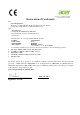 Acer America Corporation 333 West San Carlos St., Suite 1500 San Jose, CA 95110, U. S. A. Tel : 254-298-4000 Fax : 254-298-4147 www.acer.com Federal Communications Commission Declaration of Conformity This device complies with Part 15 of the FCC Rules. Operation is subject to the following two conditions: (1) this device may not cause harmful interference, and (2) this device must accept any interference received, including interference that may cause undesired operation.