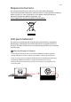 Acer eColor Management Operation instructions Step 1: Press “ “ Key to open the Acer eColor Management OSD and access the scenario modes Step 2: Press “ “ or “ ” to select the mode Step 3: Press “ AUTO “ Key to confirm the mode and exit the eColor menu. Features and Benefits Main Menu icon Sub Menu icon Sub Menu item D escription N/A User mode User defined. Settings can be fine-tuned to suit any situation N/A ECO mode Adjusts the settings to reduce power consumption.
