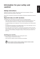 Safety instructions Read these instructions carefully. Keep this document for future reference. Follow all warnings and instructions marked on the product. Acer monitor is purposed for video and visual display of information obtained from electronic devices. Special notes on LCD monitors The following are normal with the LCD monitor and do not indicate a problem. • Due to the nature of the fluorescent light, the screen may flicker during initial use.