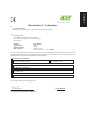 English Acer America Corporation 333 West San Carlos St., San Jose Suite 1500 CA 95110, U. S. A. Tel : 254-298-4000 Fax : 254-298-4147 www.acer.com Federal Communications Commission Declaration of Conformity This device complies with Part 15 of the FCC Rules. Operation is subject to the following two conditions: (1) this device may not cause harmful interference, and (2) this device must accept any interference received, including interference that may cause undesired operation.