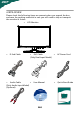 UNPACKING Please check the following items are present when you unpack the box, and save the packing materials in case you will need to ship or transport the monitor in future.