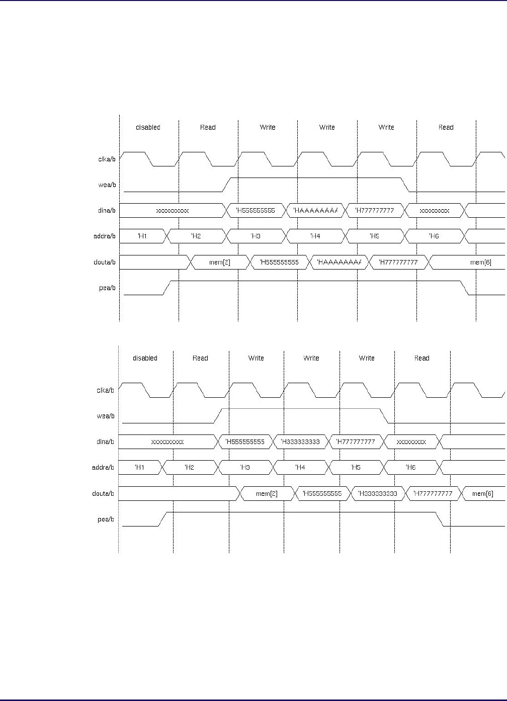 Thetimingdiagramsforthefourcombinationsoftheporta_write_mode(portb_write_mode)
