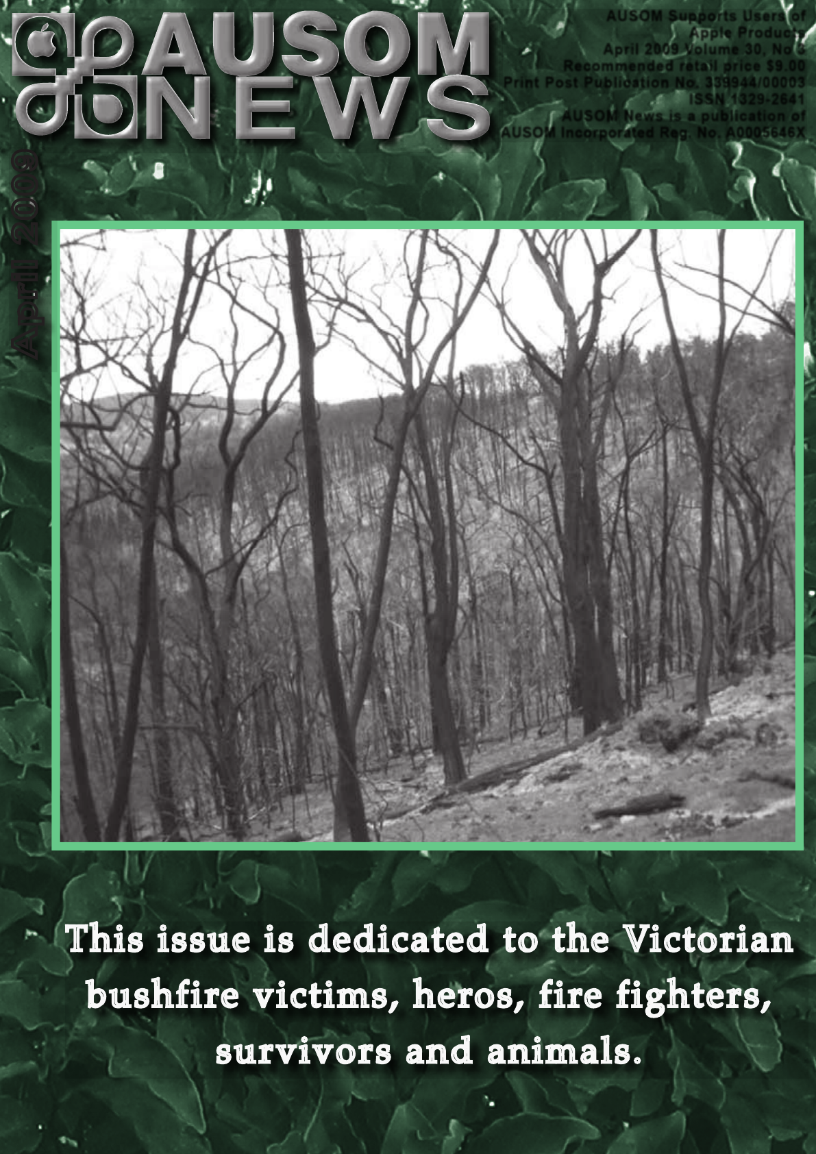 April 2009 AUSOM Supports Users of Apple Products April 2009 Volume 30, No 3 Recommended retail price $9.00 Print Post Publication No. 339944/00003 ISSN 1329-2641 AUSOM News is a publication of AUSOM Incorporated Reg. No. A0005646X This issue is dedicated to the Victorian bushfire victims, heros, fire fighters, survivors and animals.