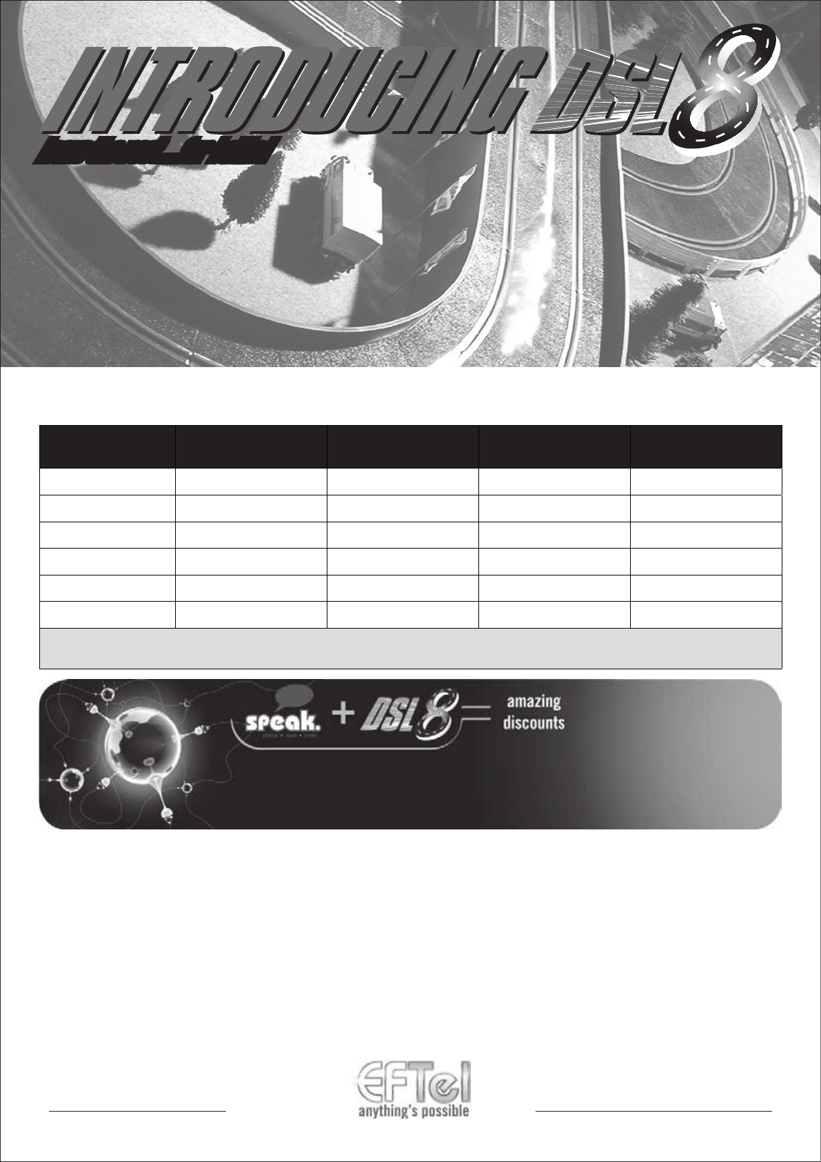 copper telephone wires in your area, network load and your computer hardware. For a complete list of factors affecting the actual speed, please visit www.eftel.com.au.