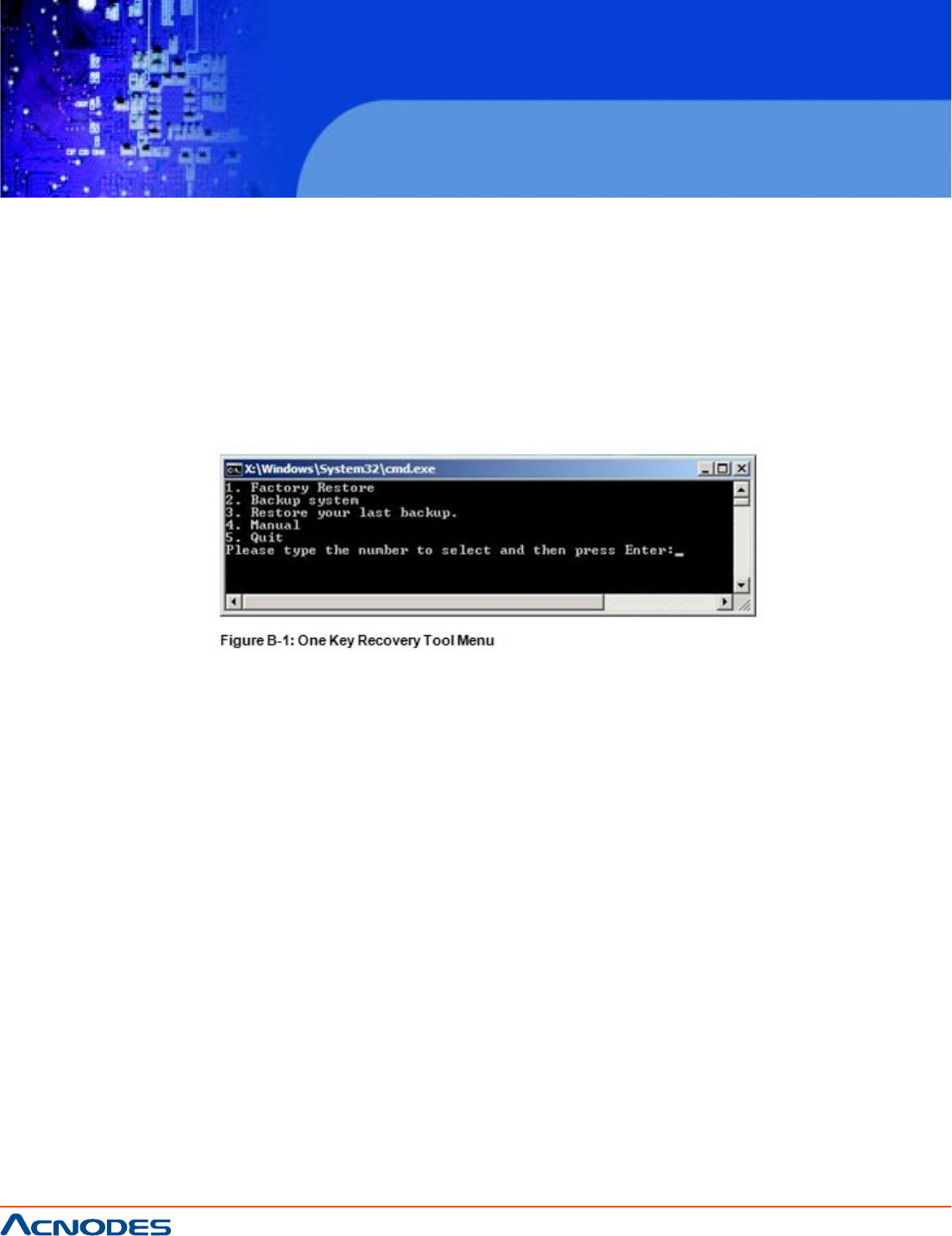 Prior to using the One Key Recovery tool (as shown in Figure B-1) to backup or restore Windows