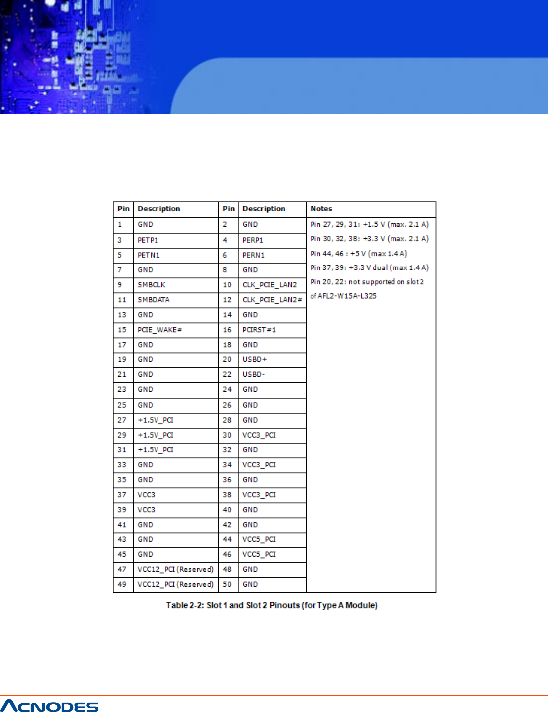 2.5.1 EXPANSION MODULE SLOT PINOUTS