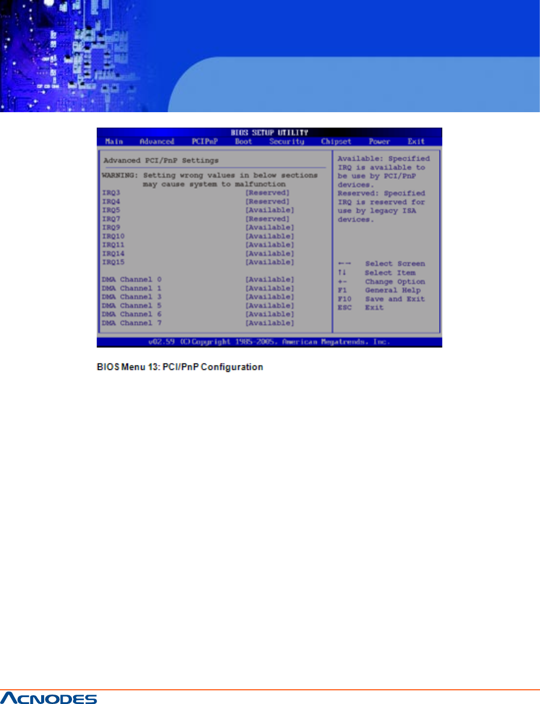 Available DEFAULT The specified IRQ is available to be used by PCI/PnP devices